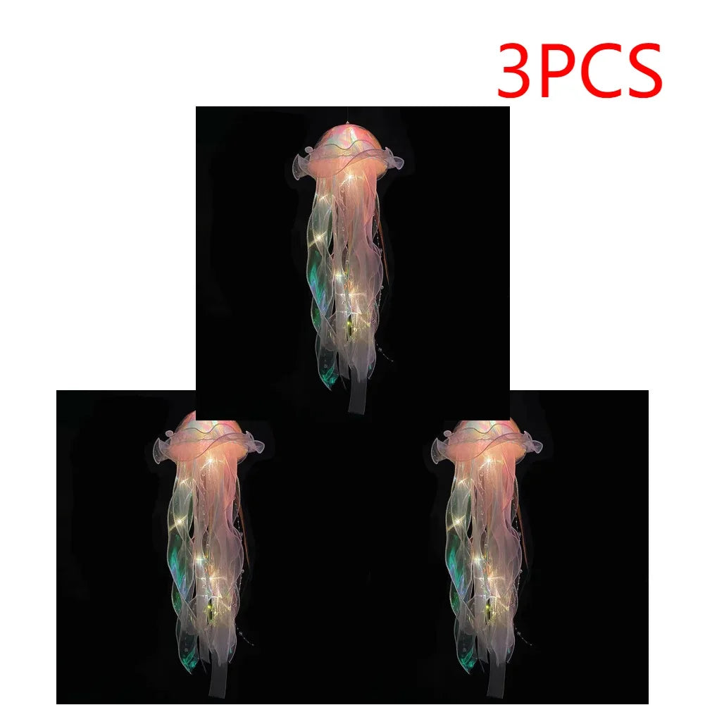 Jellyfish Atmosphere Night Light Button Battery Colorful Nightlight Creative Realistic with Ribbon&Bead for Children Bedroom